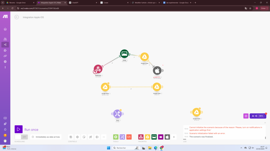 Puis je passe sur Make un site qui permet de connecter facilement un multitude d’applications et de fonctionnalités.