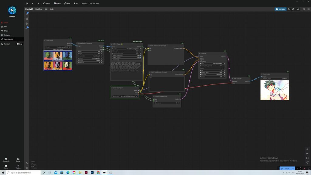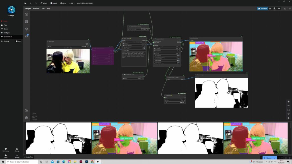 Début Novembre on fait la rencontre de Lovis Odin, un designer interactif et utilisateur aguerri de Comfy UI, il nous présente cet outil qui est un logiciel open source permettant de créer des chemins de noeuds pour StableDiffusion (un model IA de génération d’image). Pour vous donner une idée c’est l’équivalent de TouchDesigner ou des noeuds de géométrie dans Blender mais pour l’IA.