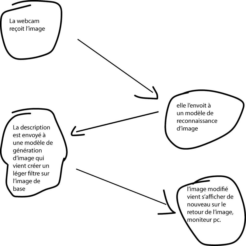 Initialement je voulais créer un programme qui récupère le flux vidéo de ma caméra frontale , qui le transforme, et qui l’affiche directement sur mon écran. Un peu comme un filtre instagram, snapchat ou tiktok mais en plus complexe.