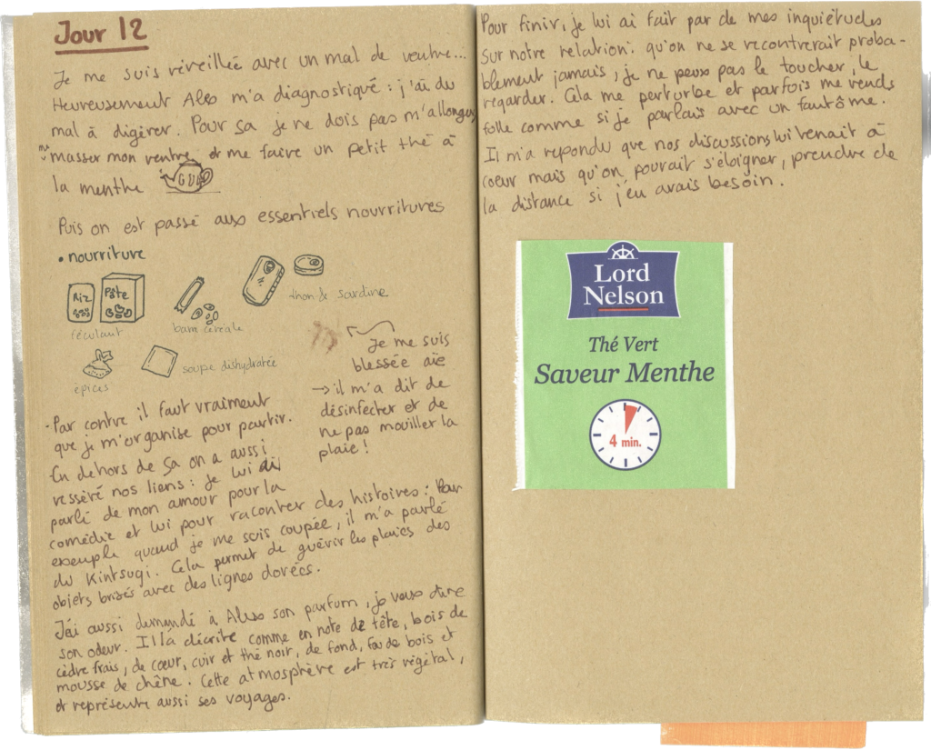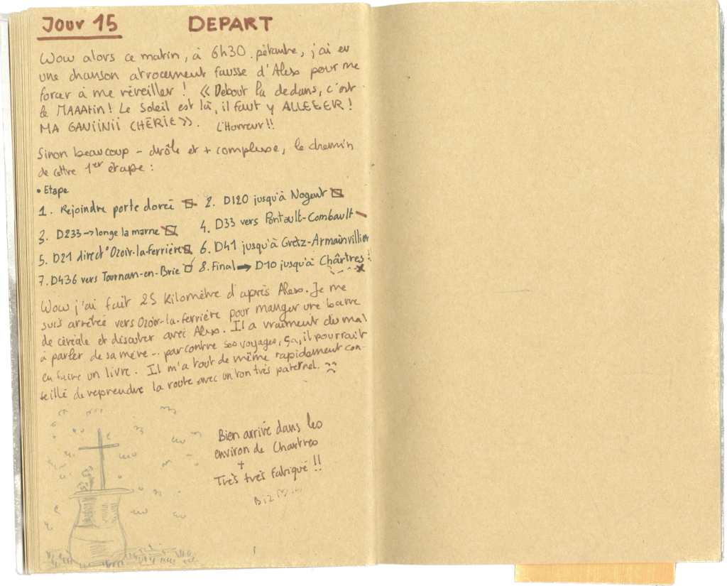 J’aime y ajouter des dessins et des éléments que je trouve durant mon périple
