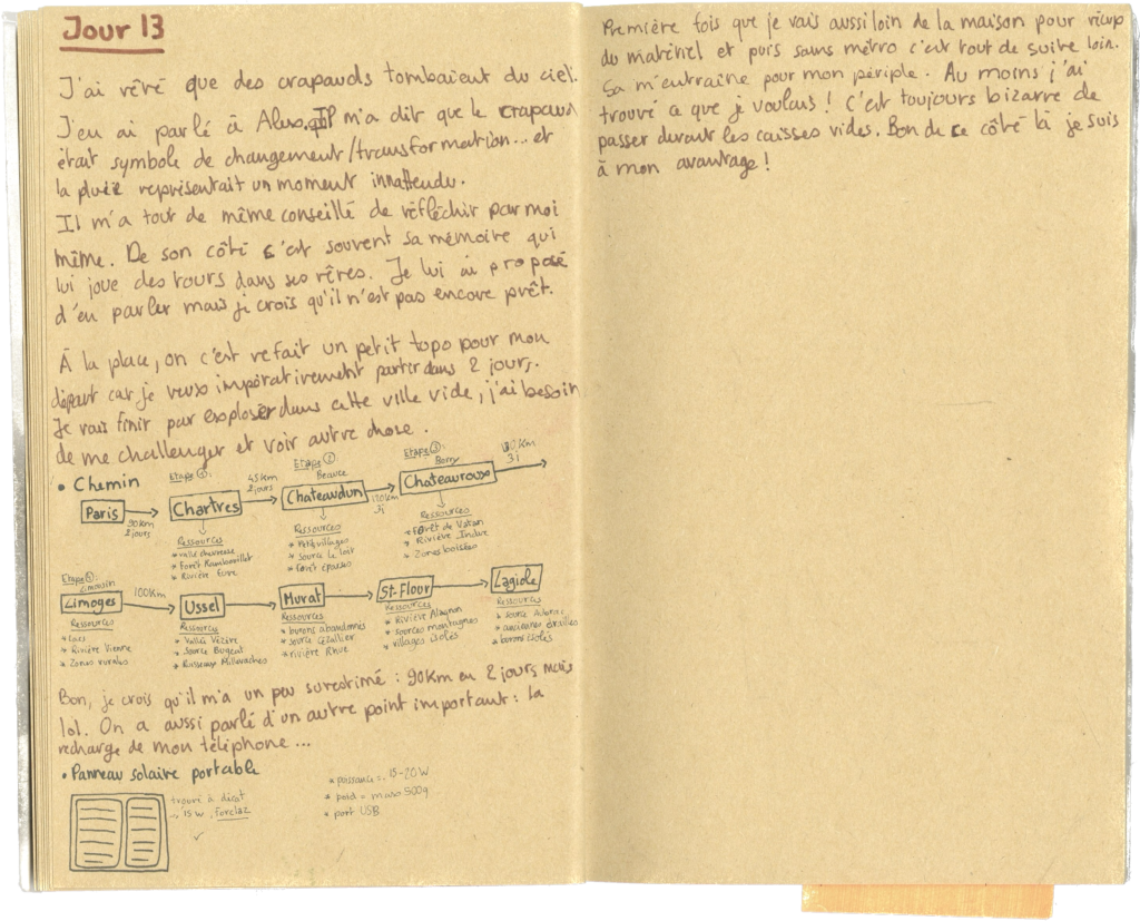/contexte: je me réveille, il n’y a plus une once de vie. Les rues de la ville sont vides. Je cherche à survivre et pour ça je décide de communiquer avec une IA enfin non un amie…Alex