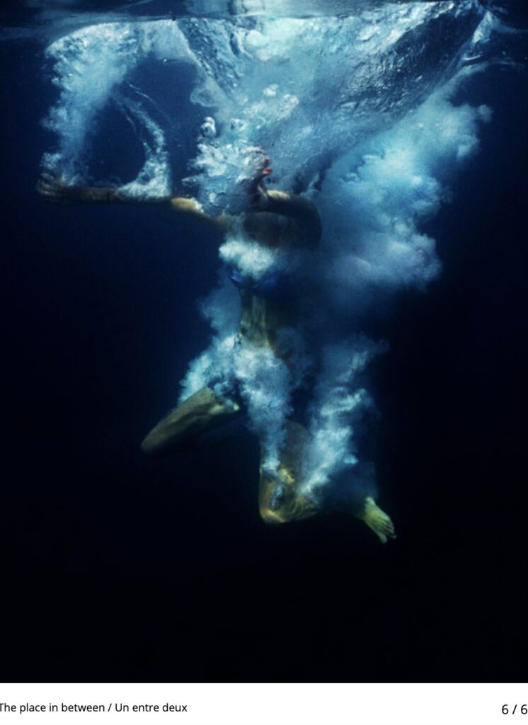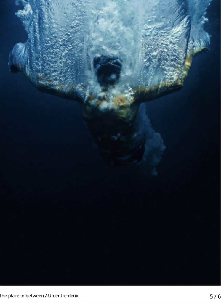 De plus, la couverture de l’édition sur laquelle j’avais cru identifier la queue d’une baleines entrant dans la mer, mais que nenni. EN m’y penchant plus précisément, il s’agit d’un extrait de la série photo « The place in between » de Narelle Autio qui capture un corps humain entrant dans l’océan. C’est aussi le cadrage qui joue des tours à ma perception.