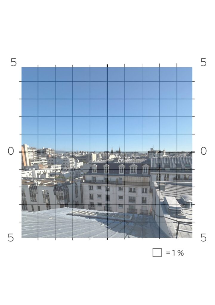 Une grille de 10 x 10 carreaux, chaque carreau représente 1% de proportion de ciel.