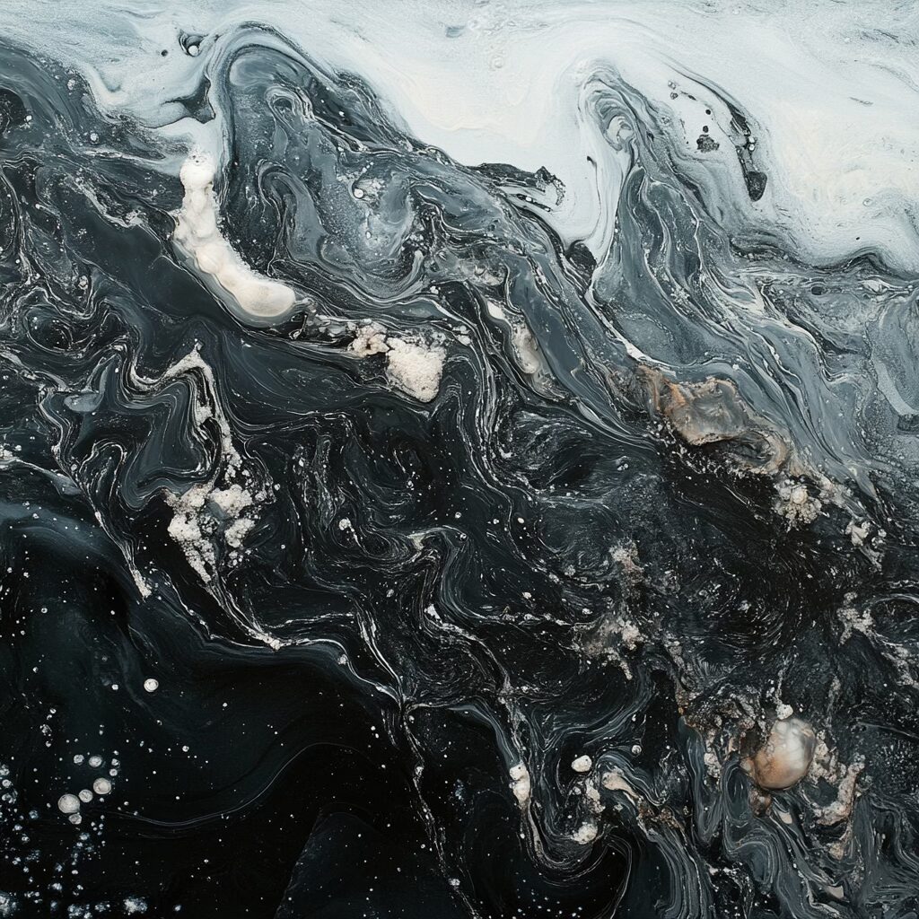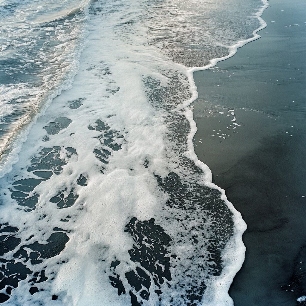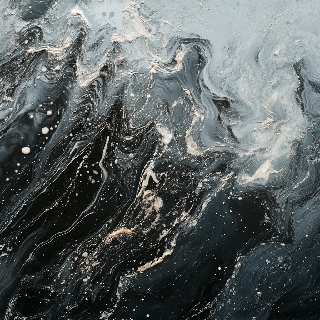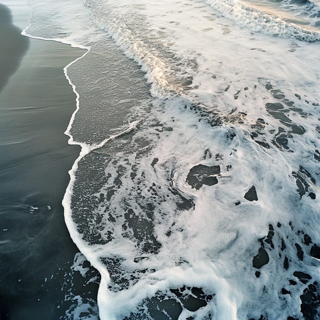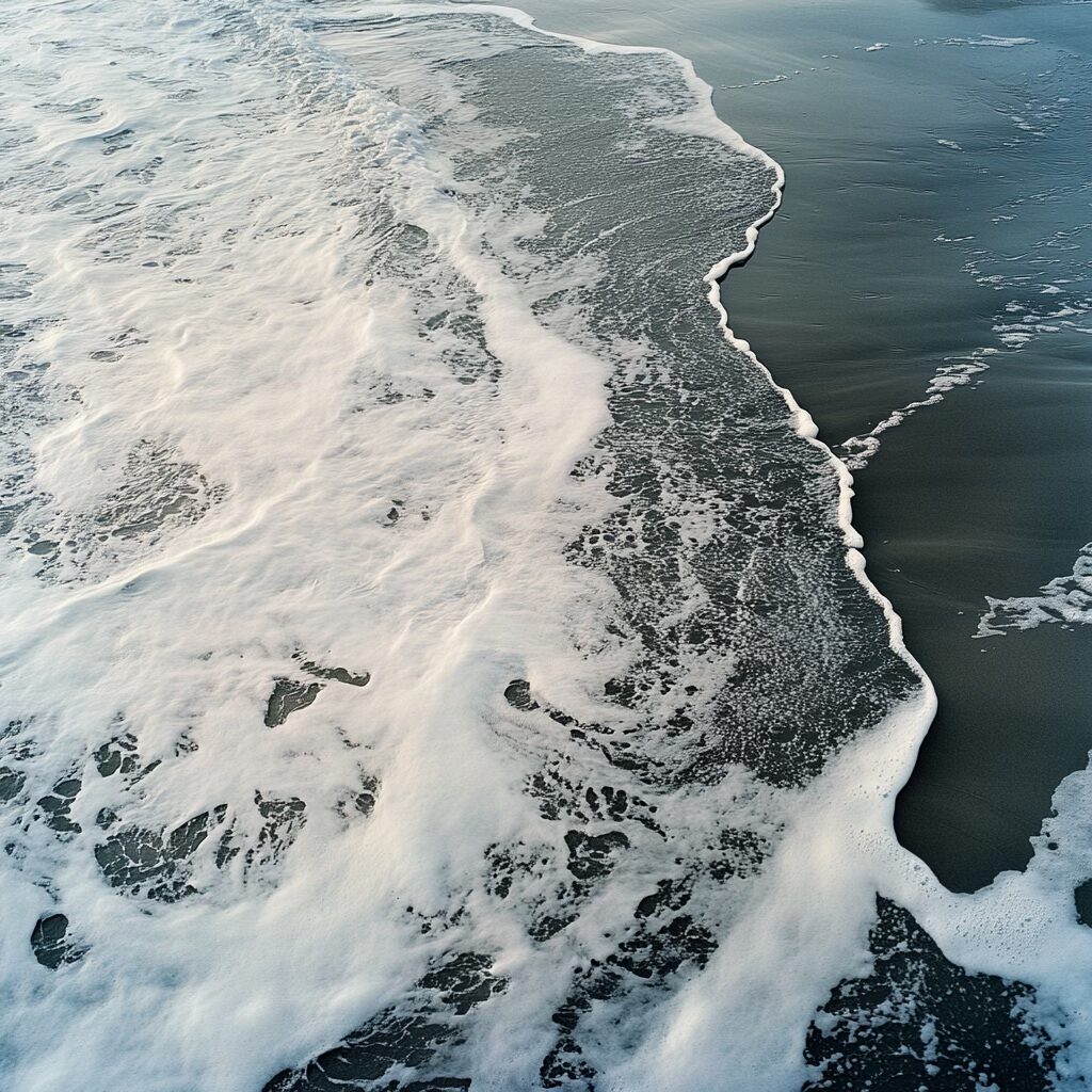 Voilà le prompt donne les images ci-dessus : » Une scène marine saisissante à l’aube, où la mer glacée dévoile une palette complexe de textures et de couleurs. L’eau, sombre et marbrée comme du métal liquide, présente des nuances d’étain, parcourues de veines gris acier et bleues. De fines particules blanches, semblables à du sucre ou du givre, flottent à la surface, poudrant les ondulations glacées. Les surfeurs, enveloppés dans des combinaisons noires étanches, semblent sculptés dans le contraste, leurs corps luisants sous l’humidité froide. La mer se creuse et se tend comme un drap de satin froissé, avec des vagues bombées et lisses, où chaque rideau d’écume est une dentelle mouvante. Le ressac mêle des galets roulants, dont la texture rugueuse apparaît sous l’eau translucide. À 200 mètres, la tension des vagues se calme, formant un line-up comme une plaine liquide infinie. L’air est mordant, chargé d’humidité glacée, et la lumière grise enveloppe l’ensemble dans une atmosphère froide et minérale. «