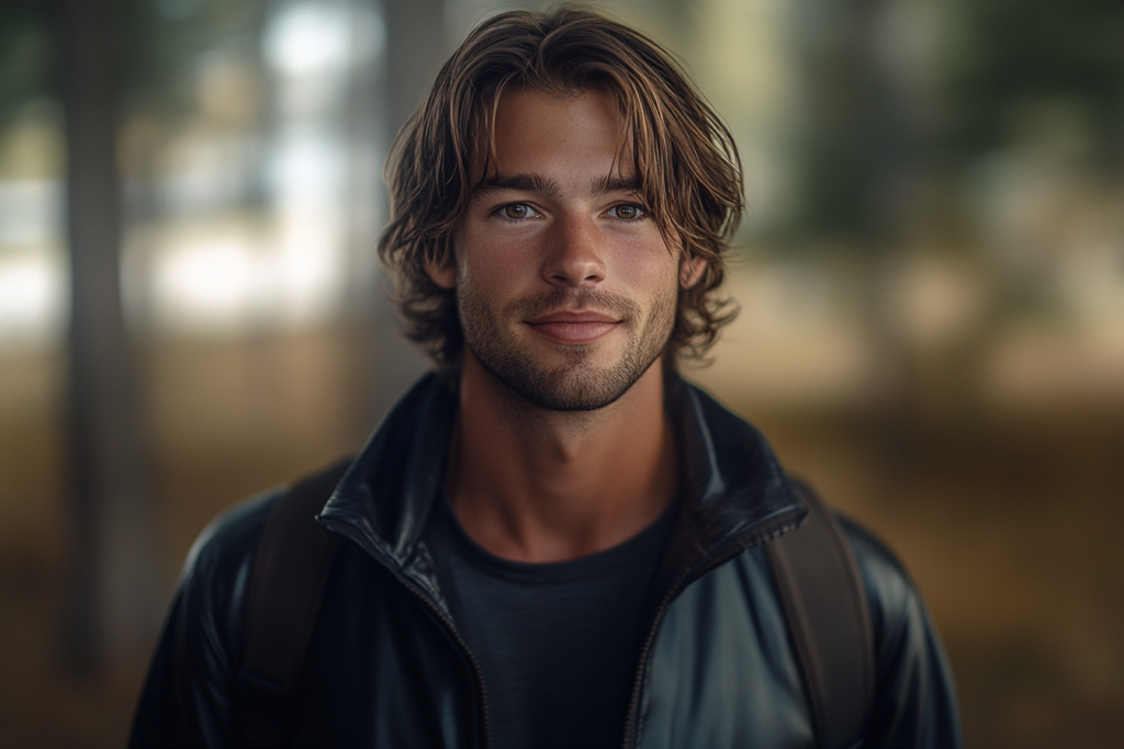 prompt –v 6.0 –aspect 3:2 close up portrait, 32 year old male, rugged adventurer, tanned skin, mid-length tousled brown hair with sun-bleached streaks, warm hazel eyes, 3-day stubble beard, defined but gentle features, leather jacket, outdoor wear, natural lighting –ar 3:2 –style raw –niji 5 –q 2