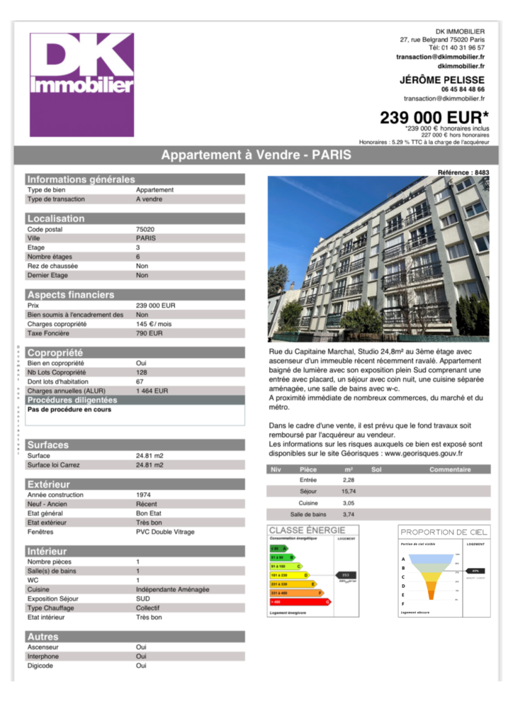 Fiche technique d’un agent immobilier avec le nouvel indicateur :