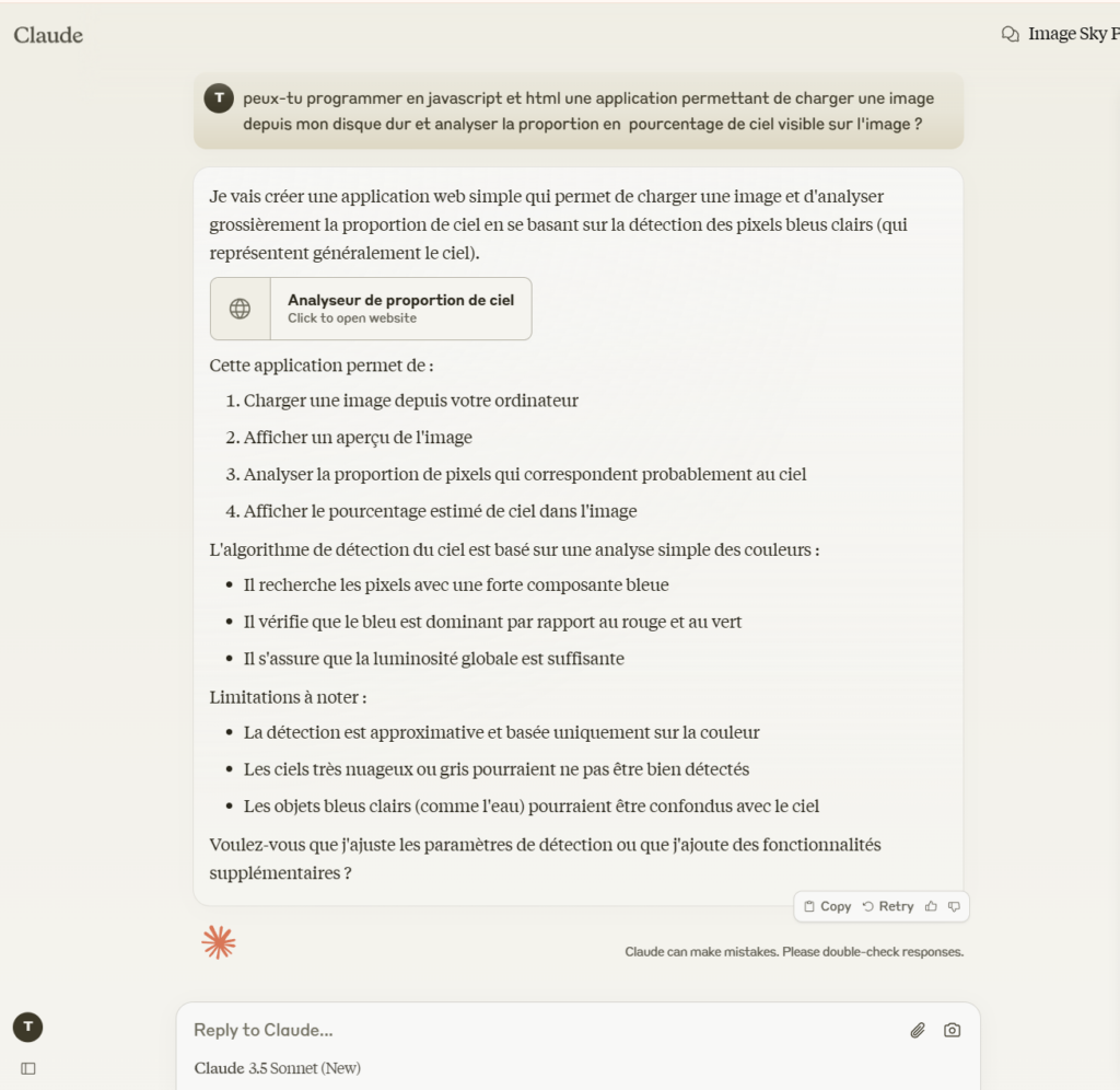 Claude AI – Algorithme qui calcul la proportion de ciel.